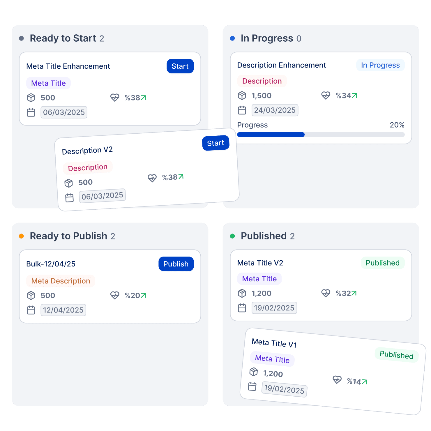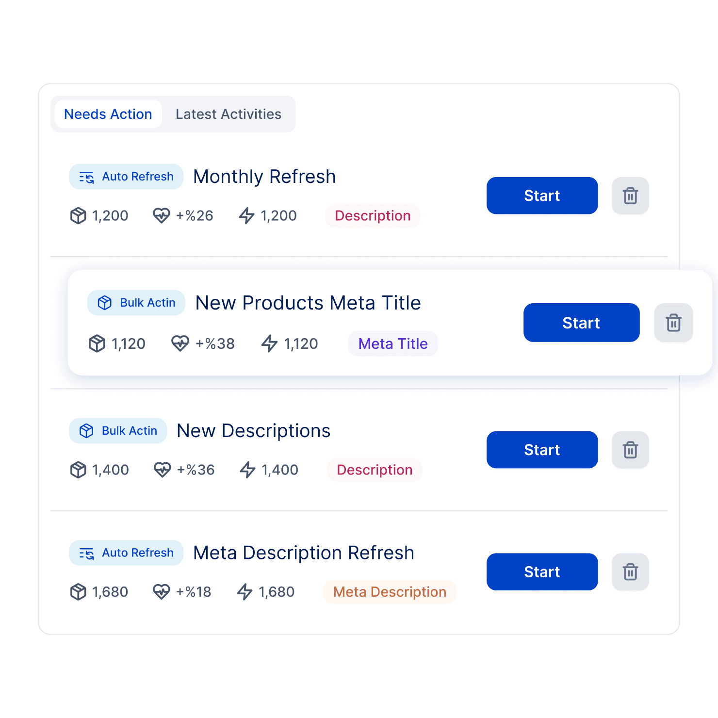 Keep your product content fresh and relevant by letting Actins automatically rewrite outdated or low-performing texts.